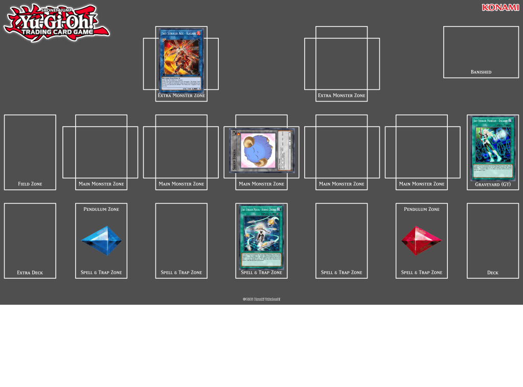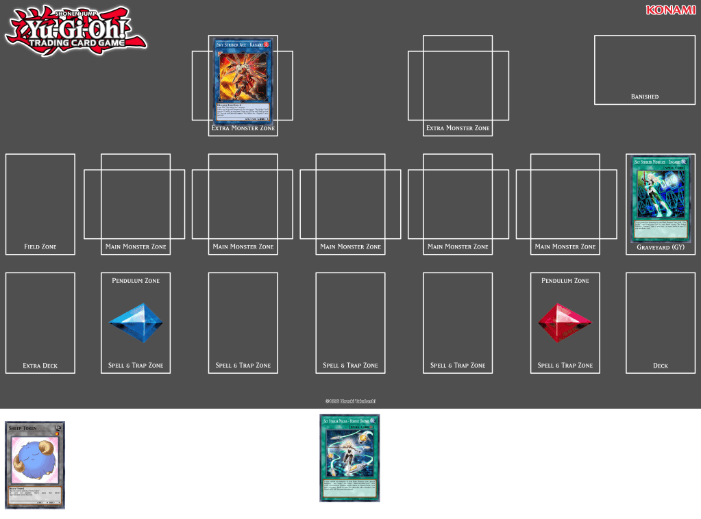 A defining characteristic of Yummy Synchro monsters is their alternative summoning condition. They allow any Link-1 monster to be treated as a Level 1 Tuner for their Summon. Consequently, Snatchy (or any Link-1) combined with any Level 1 monster satisfies the material requirements. This generic condition enables synergy with other engines such as the “Sky Striker” engine. By activating Sky Striker Mobilize – Engage! to search for Sky Striker Mecha – Hornet Drones, a player can summon a token, use the token to Link Summon Sky Striker Ace – Kagari, a Link Monster who’s effect on summon retrieves Hornet Drones back to the hand, allowing it to be activated again. This sequence produces a Link-1 monster and a Level 1 Token, which can be used to Sychro Summon any of the level 2 Yummy Synchro monsters without using your Normal Summon.