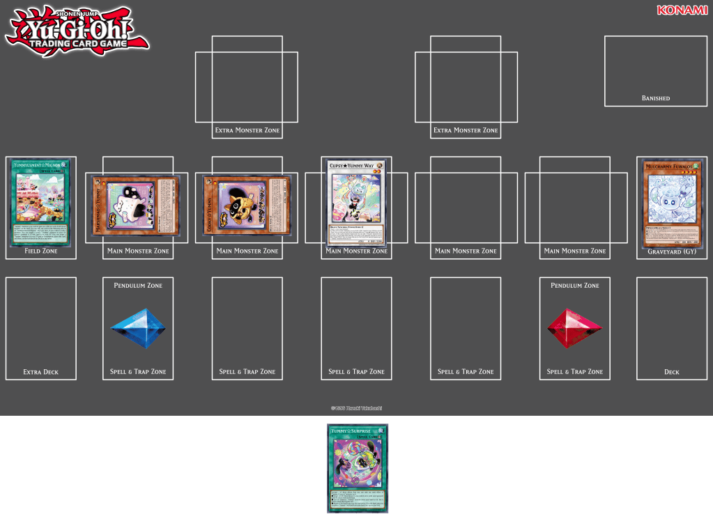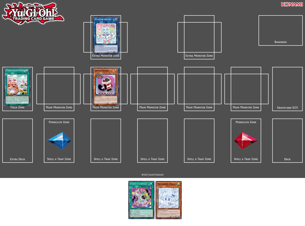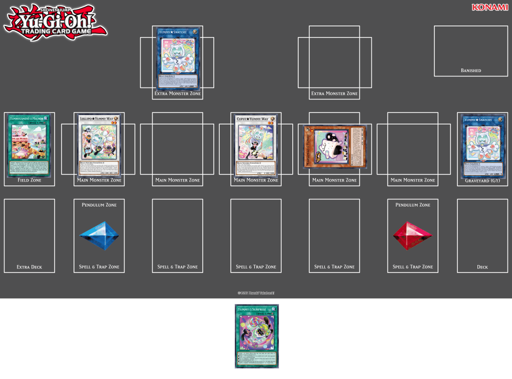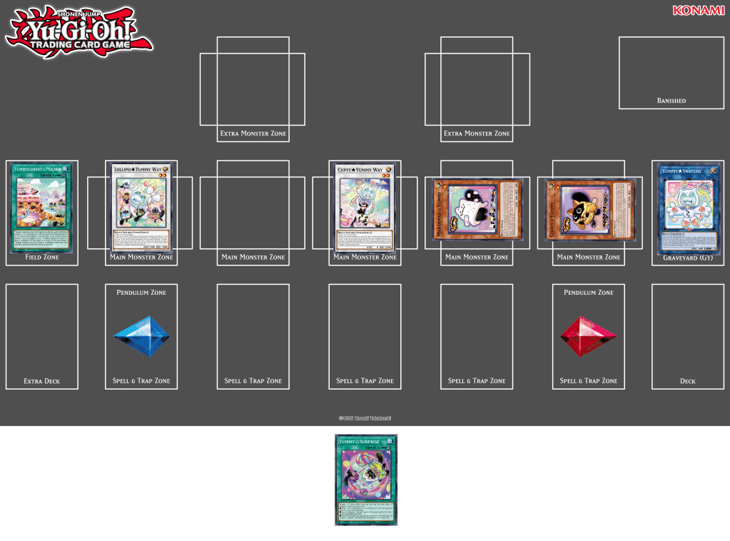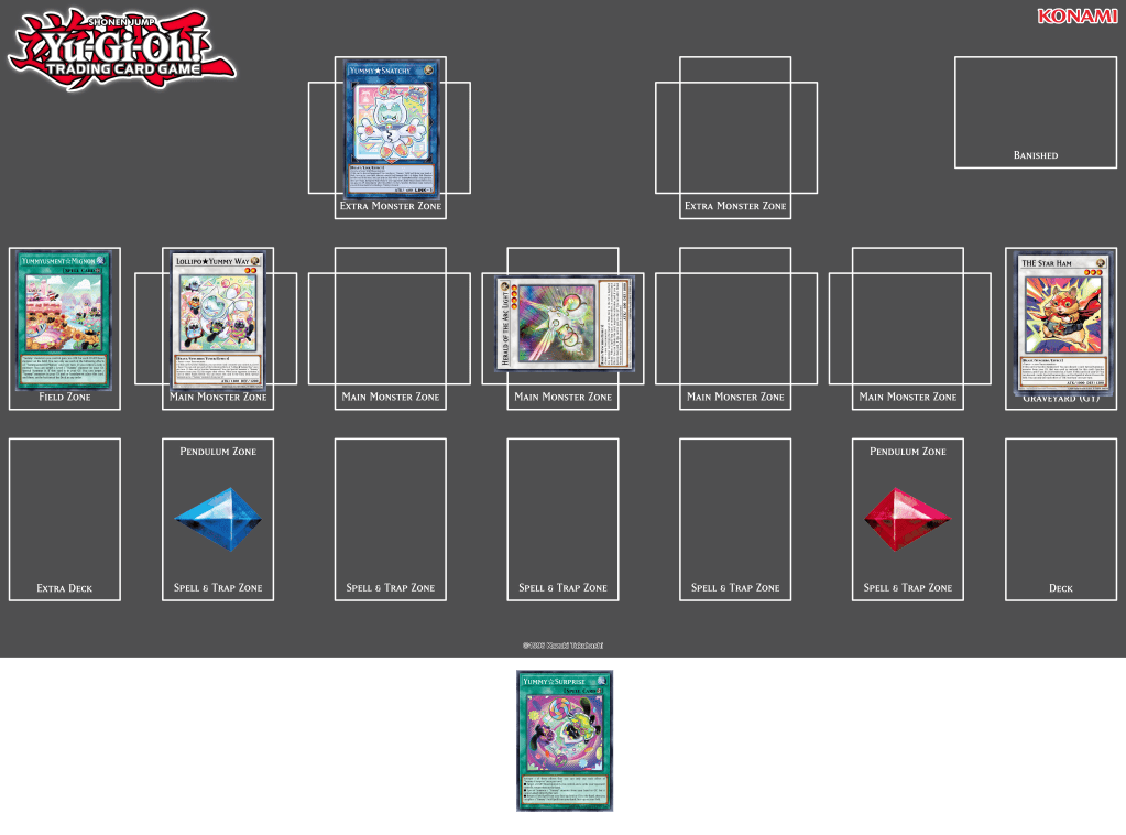• Return 1 Field Spell from your face-up field or GY to the hand, then you can place 1 “Yummy” Field Spell from your hand, face-up on your field.